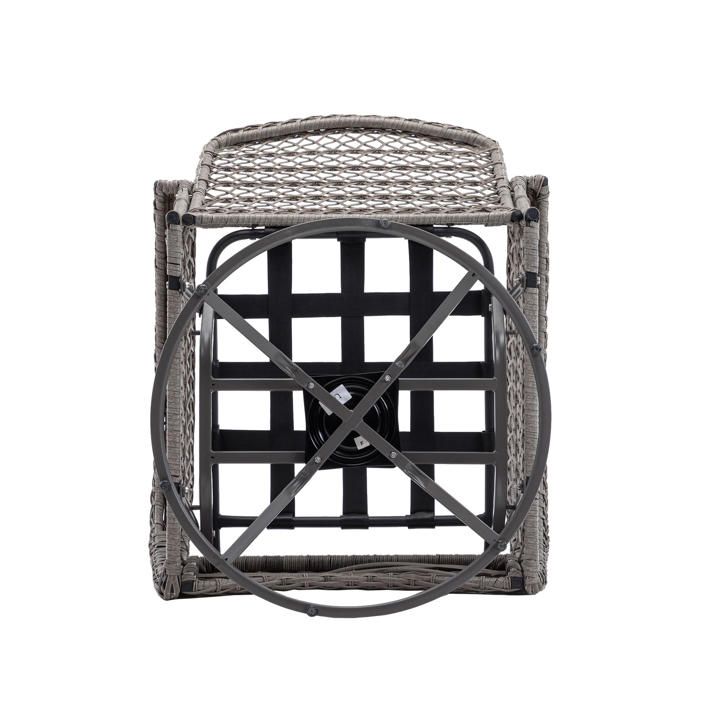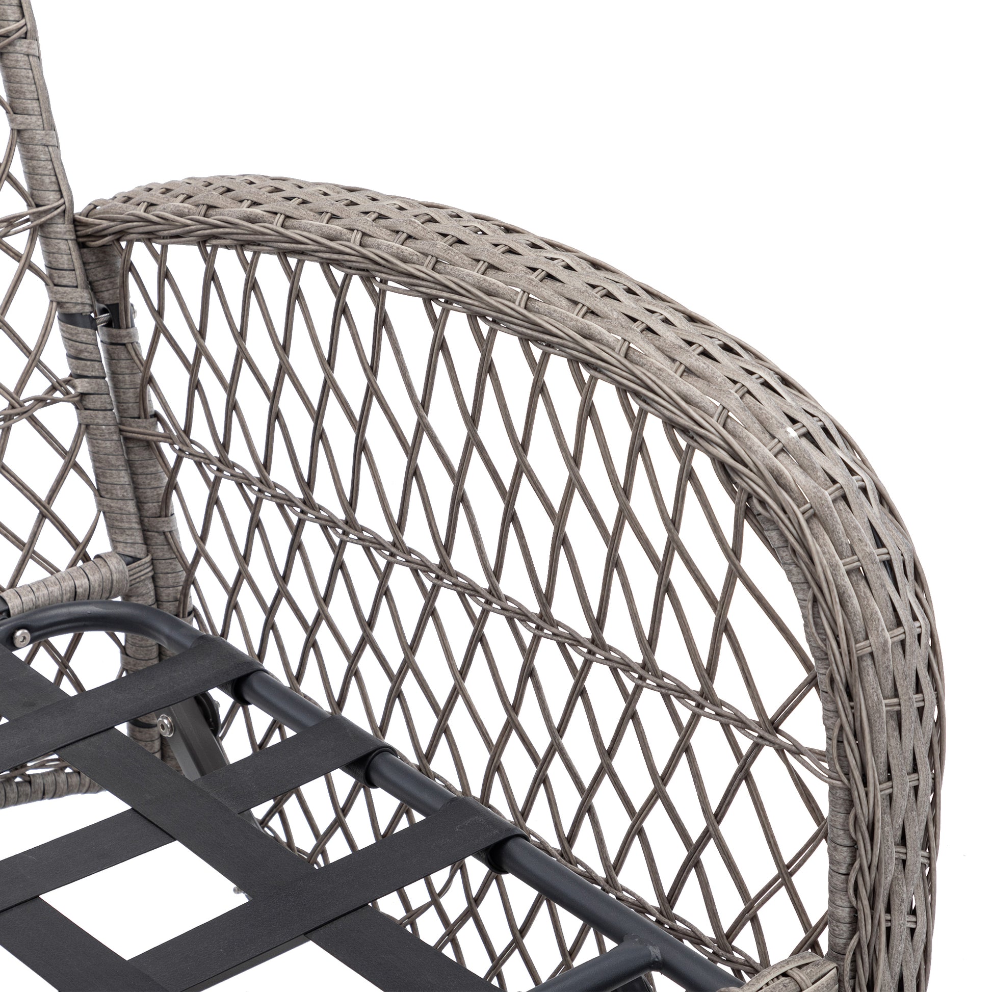 Grey coated heavy steel frame has the characteristics of stability and strong load-bearing capacity up to 330lbs.All-weather round wicker withstands the elements. The cushion adopt good fabric, filled with high-density sponge for high resilience, comfortable and durable, removable and washable.