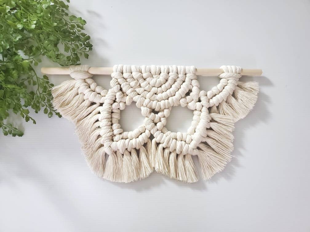 These adorable macrame wall hangings are handmade.