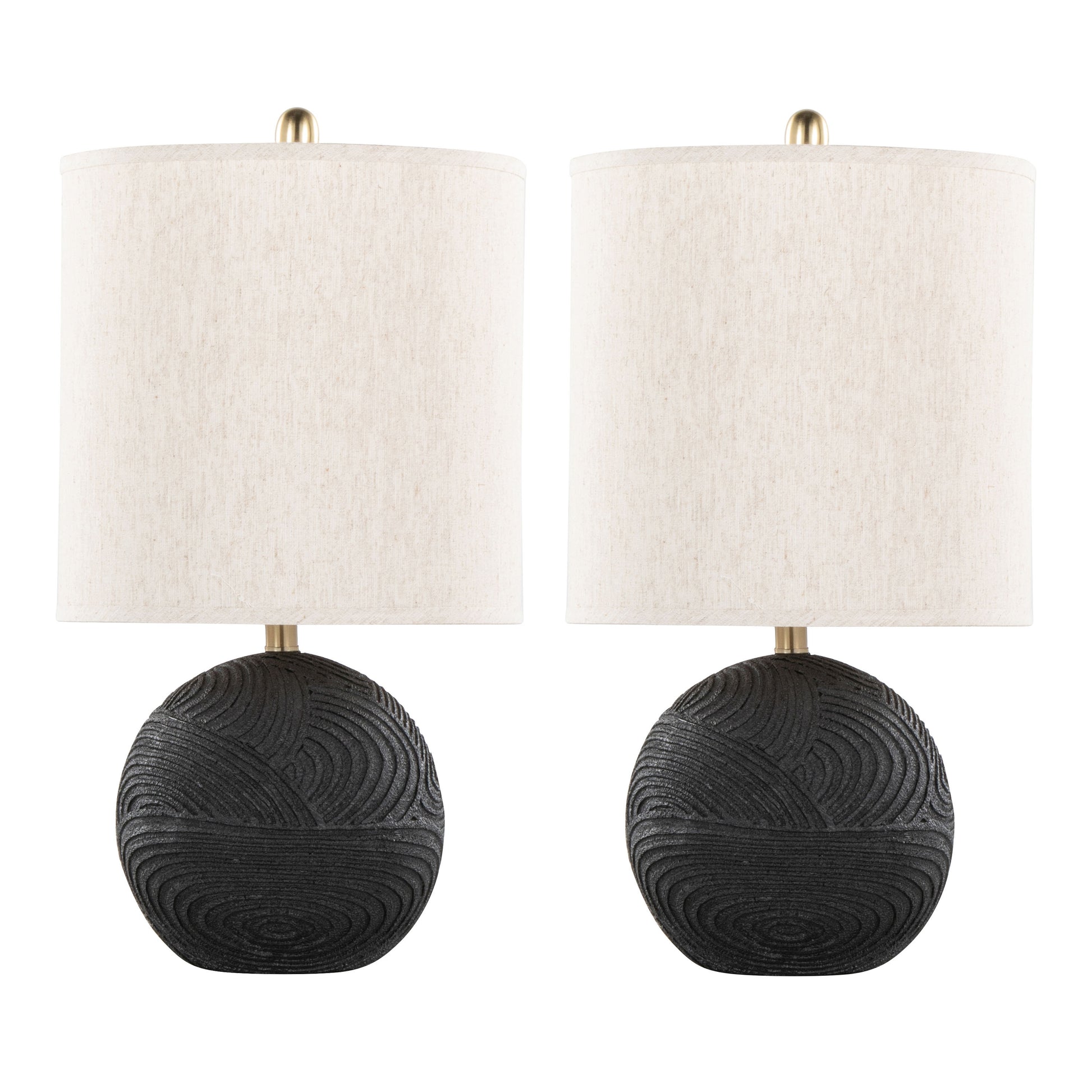 Kona 23' Contemporary Polyresin Table Lamp in Matte Black Polyresin, Modern Brass and Natural Linen Shade from Grandview Gallery by LumiSource - Set of 2