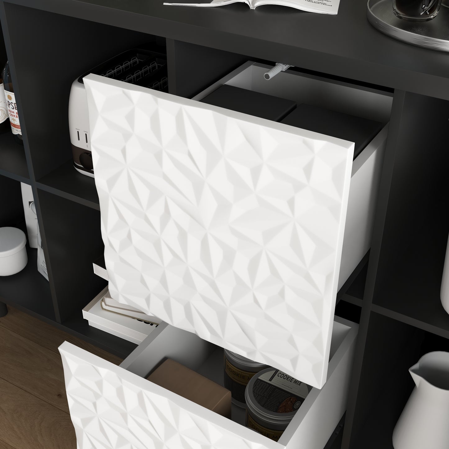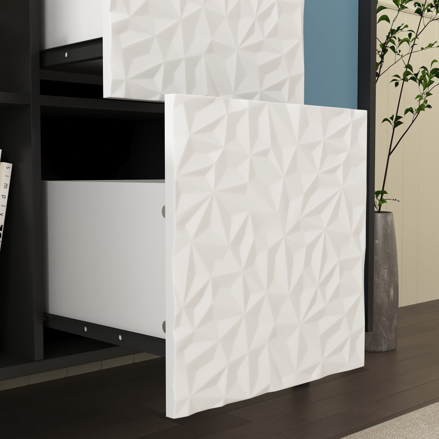 - NOT ONLY A SIDEBOARD - Beyond being used as a sideboard buffet for dinning room, this black cabinet also serves perfectly as a storage cabinet to organize piles of books in study, even can be placed in living room for extra storage, And the perfect color matching of this cabinet and the unique shape of the drawer panel will bring a different aesthetic experience to the home