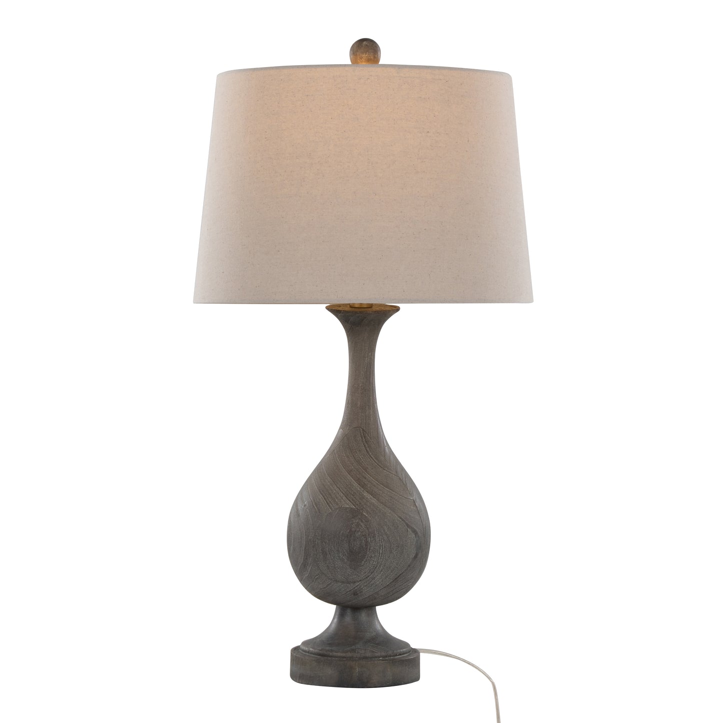 - Add a rustic design element to your space with the Cipolla Table Lamp from Grandview Gallery by LumiSource. This polyresin lamp features a tapered linen drum shade and faux wood design and showcases a teardrop body with an hourglass stem. Whether resting on your nightstands, set on side tables in the den, or tucked into your favorite reading nook, this set of lamps adds a touch of warmth to any space.