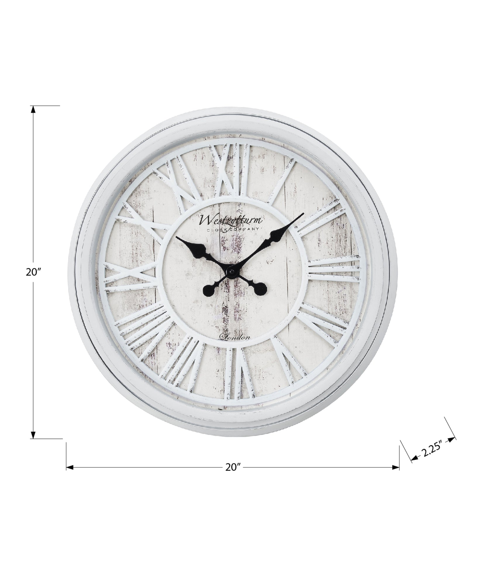 - This trendy 20' round wall clock in light grey with a printed rustic backdrop, looks chic and stylish in transitional home decors.