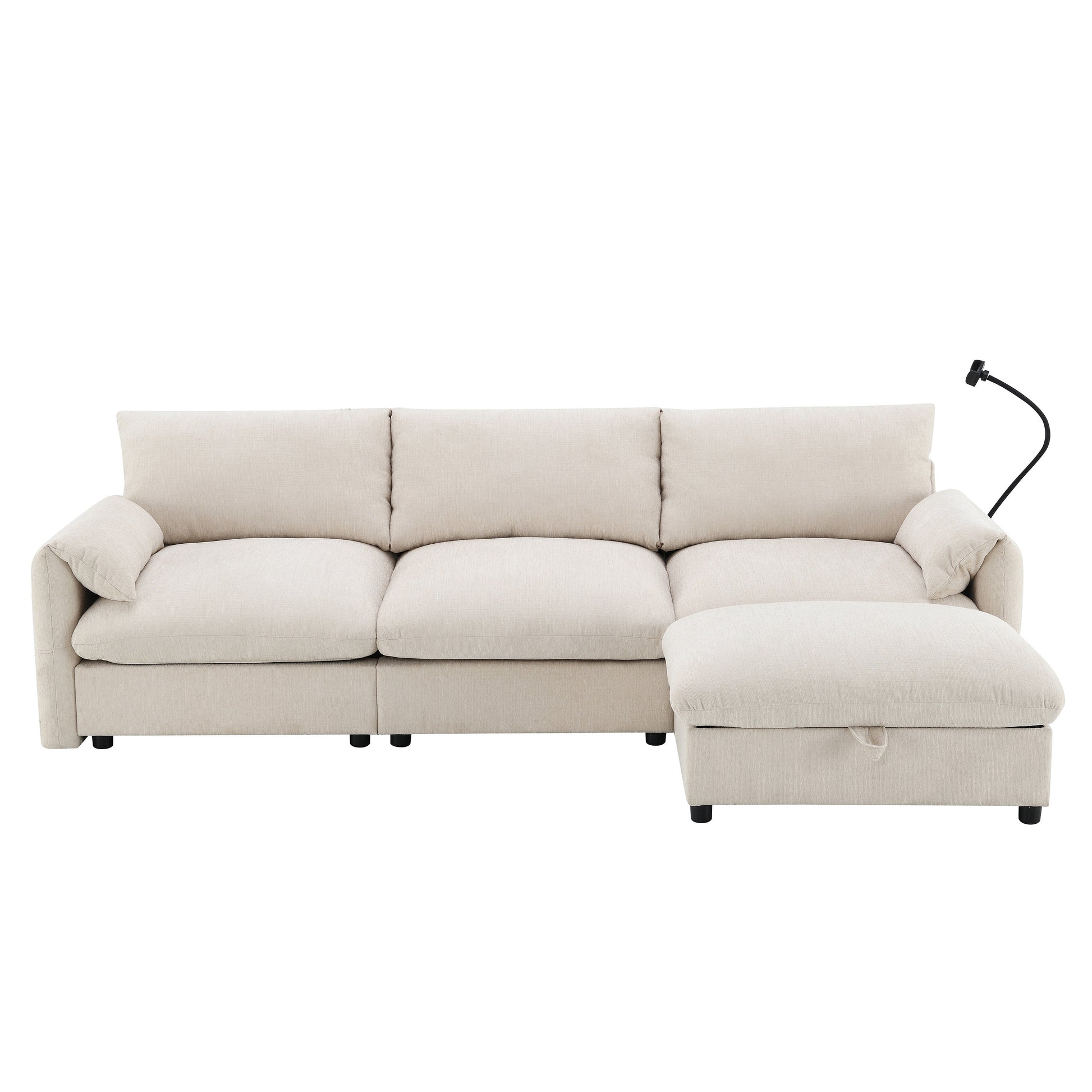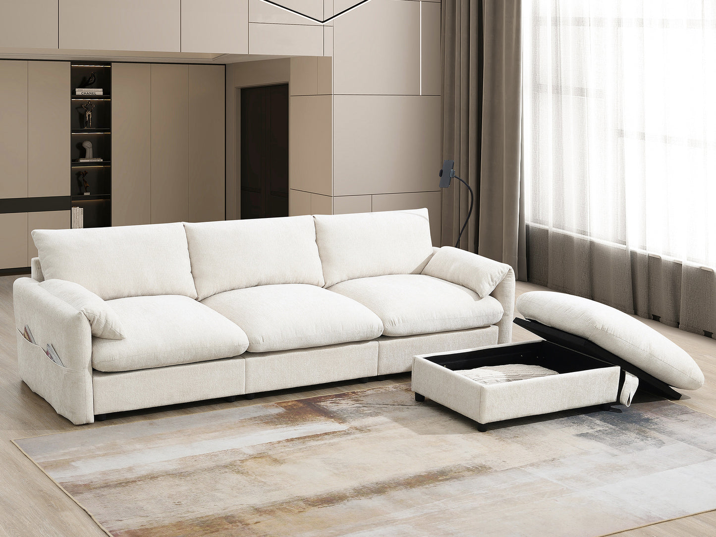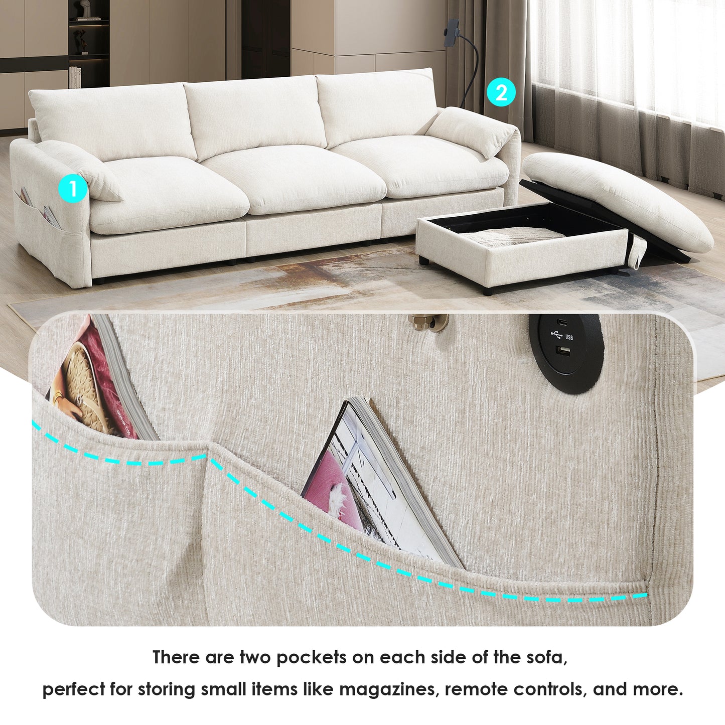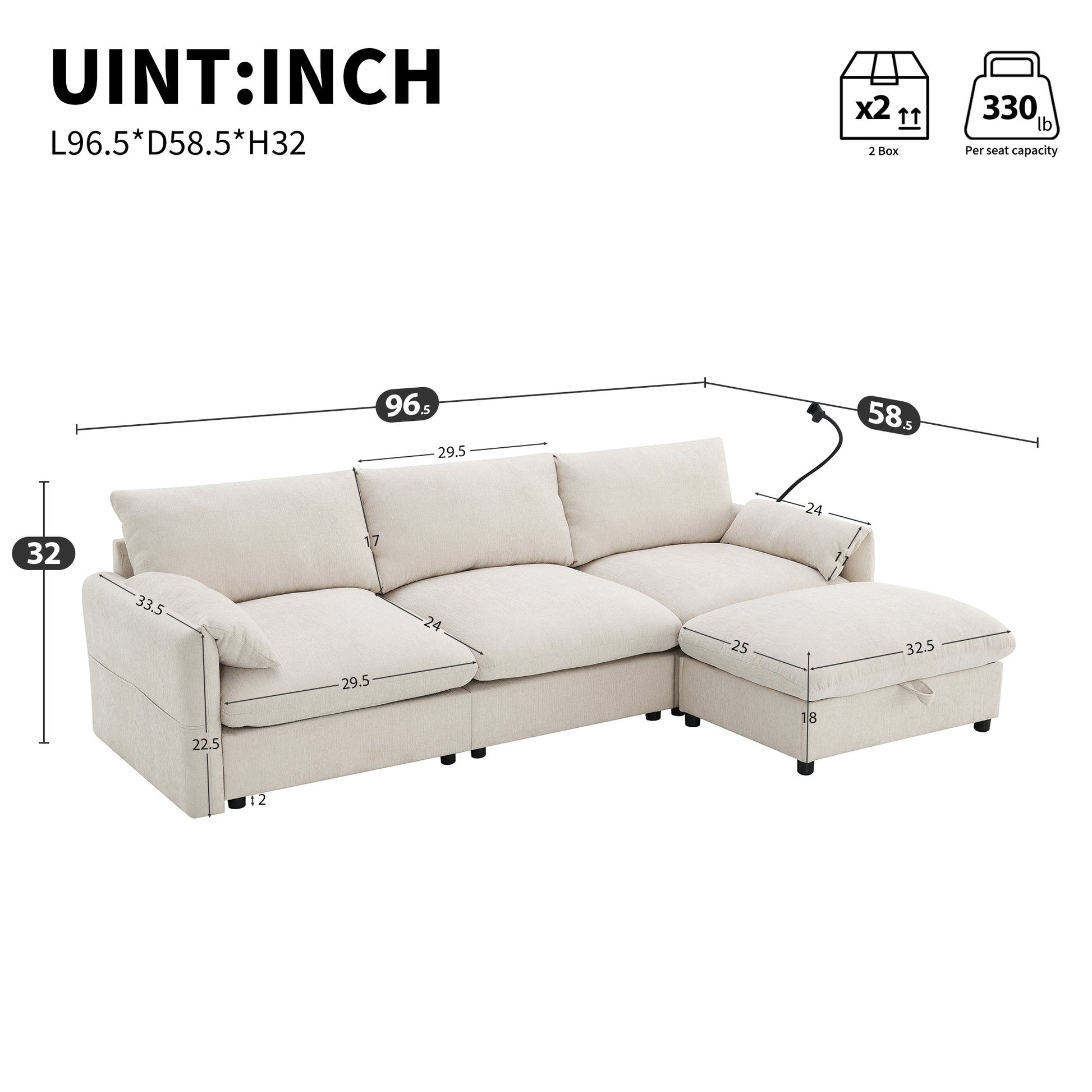 96.5'' Chenille Sectional Sofa with Storage Ottoman and Pockets,Adjustable Phone Holder,Wide Seat,4 Seat L Shaped Couch Set,Comfy Sofa with USB Charger for Living Room,Apartment,3 Colors
