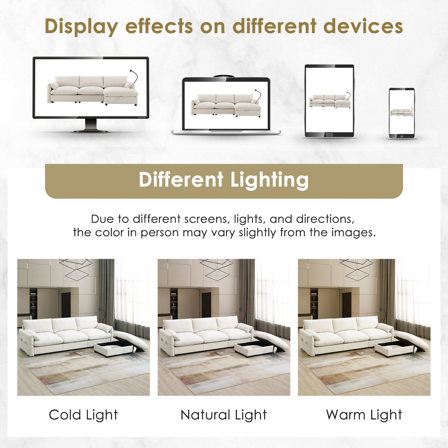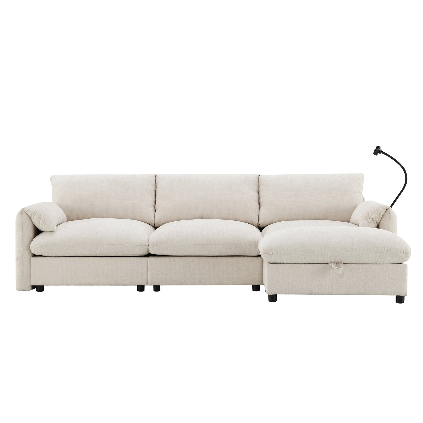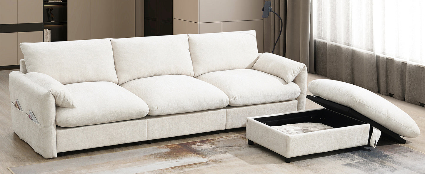 96.5'' Chenille Sectional Sofa with Storage Ottoman and Pockets,Adjustable Phone Holder,Wide Seat,4 Seat L Shaped Couch Set,Comfy Sofa with USB Charger for Living Room,Apartment,3 Colors
