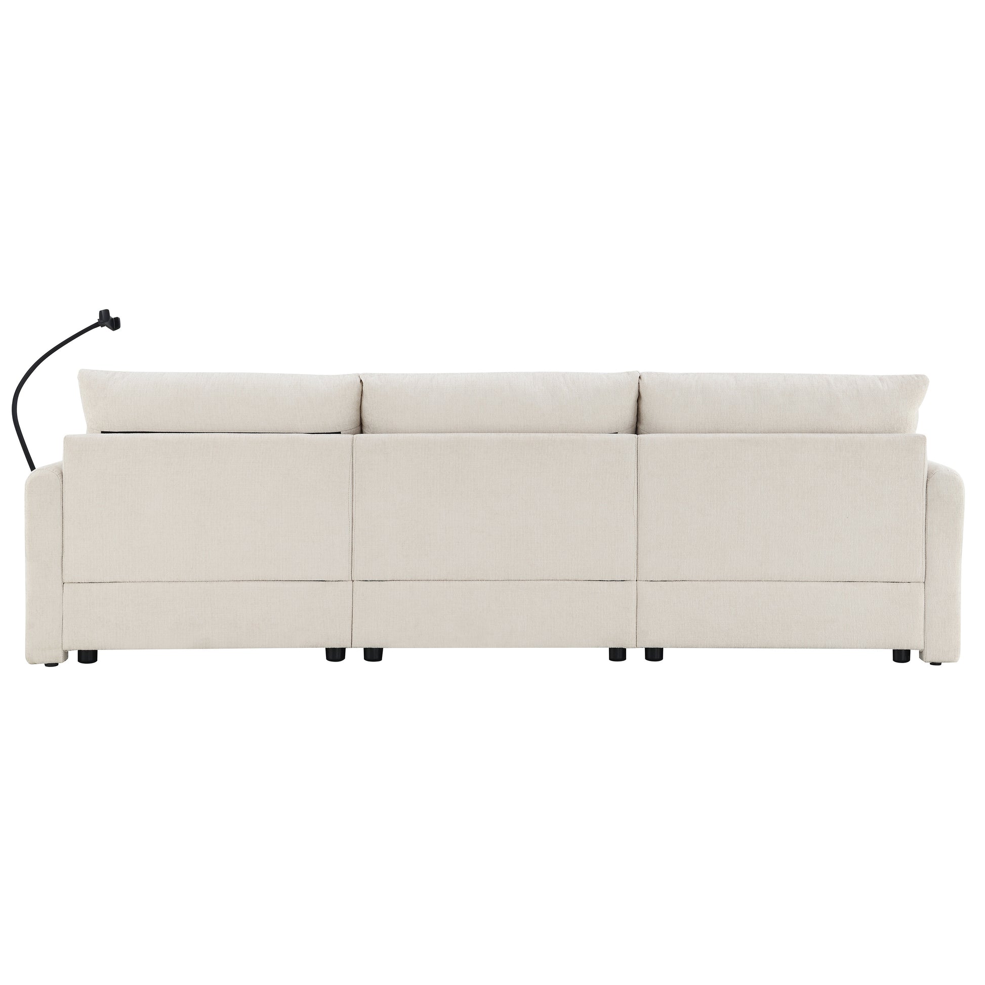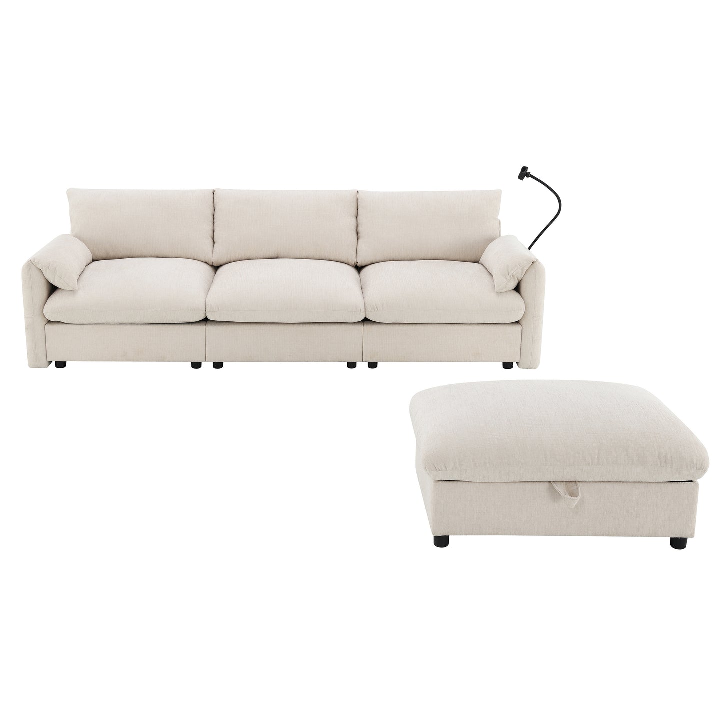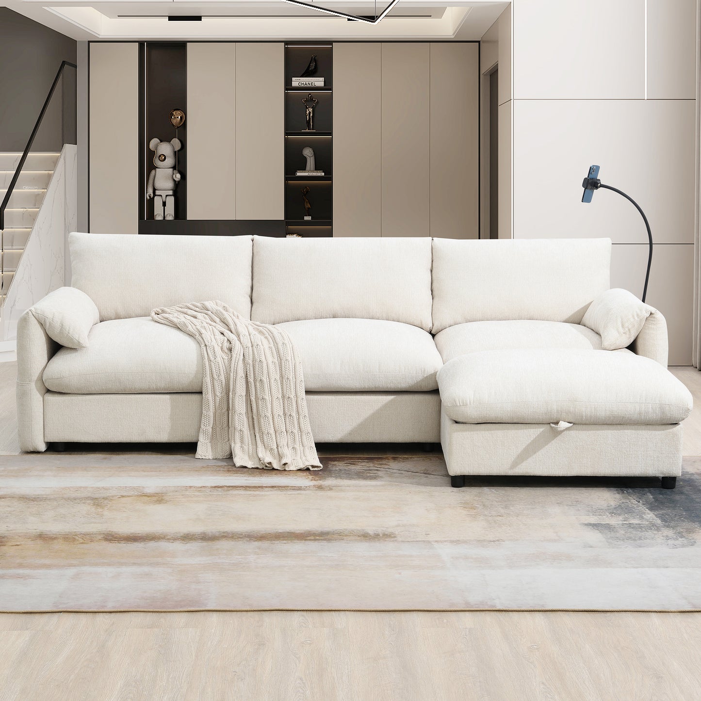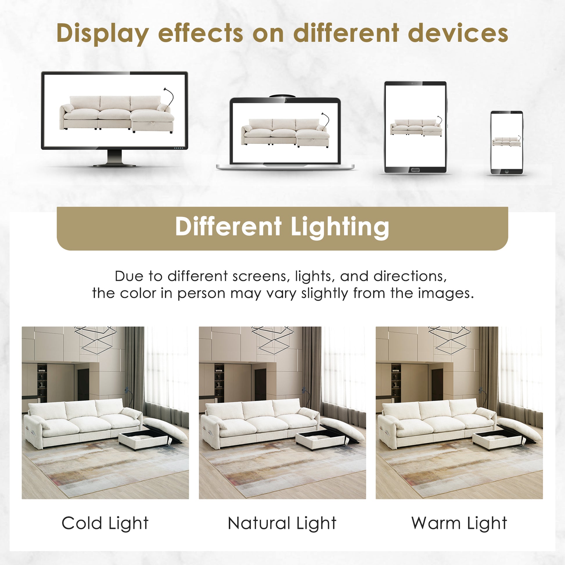 96.5'' Chenille Sectional Sofa with Storage Ottoman and Pockets,Adjustable Phone Holder,Wide Seat,4 Seat L Shaped Couch Set,Comfy Sofa with USB Charger for Living Room,Apartment,3 Colors