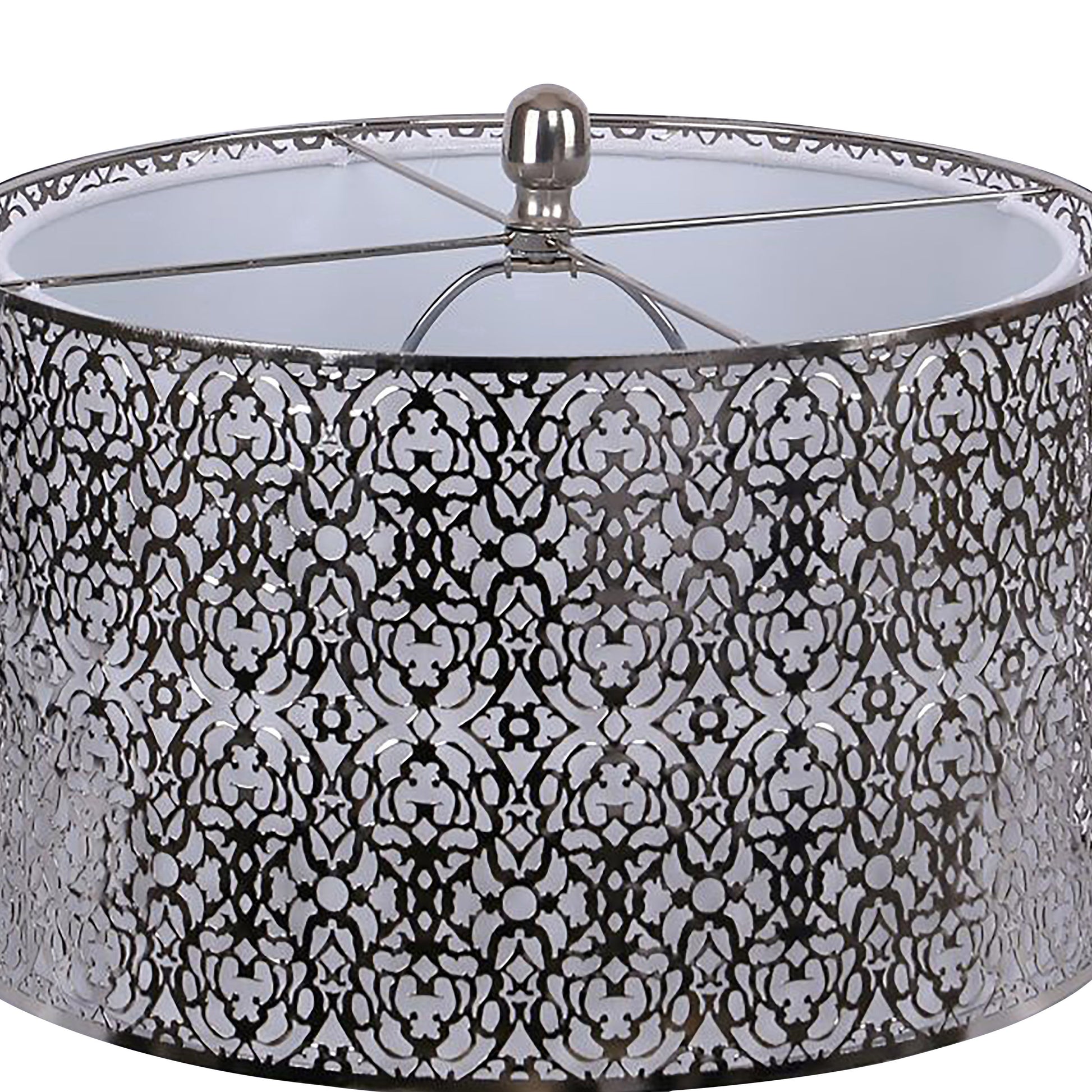 Ashland 63' Contemporary Metal Floor Lamp in Polished Nickel with Laser Cut Metal and White Linen Shade from Grandview Gallery by LumiSource