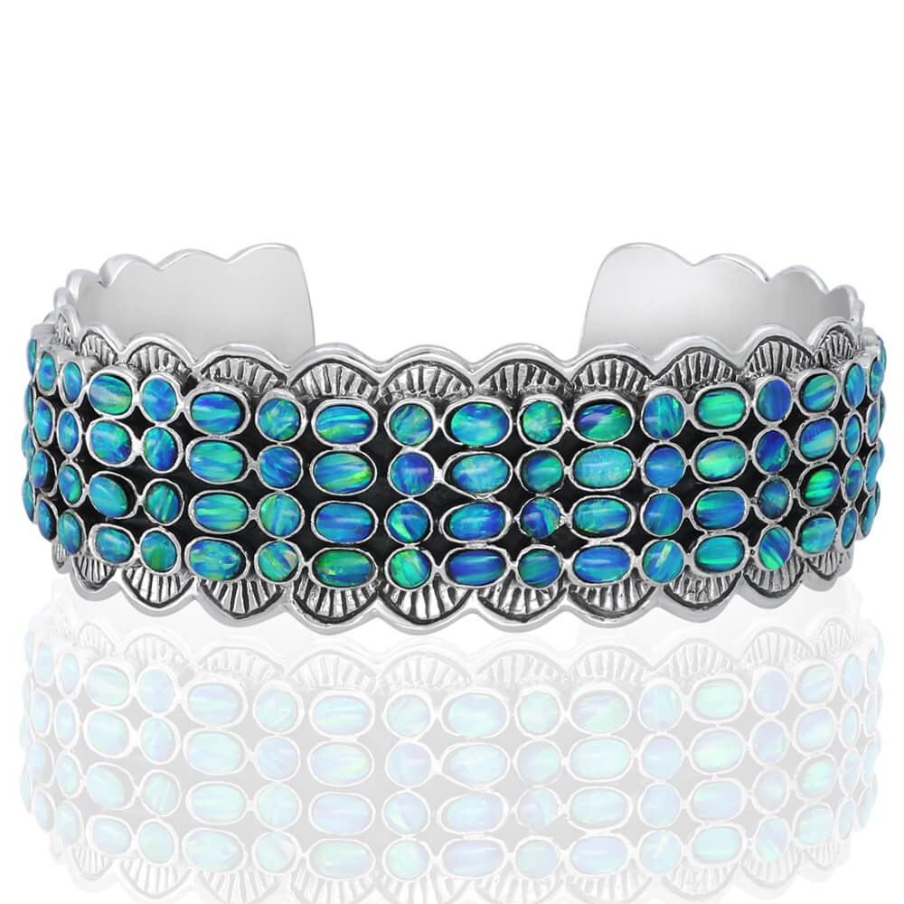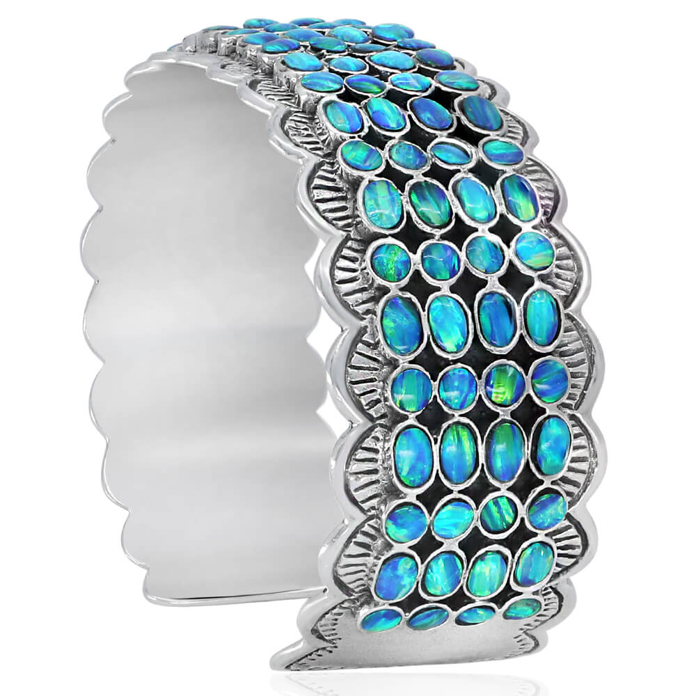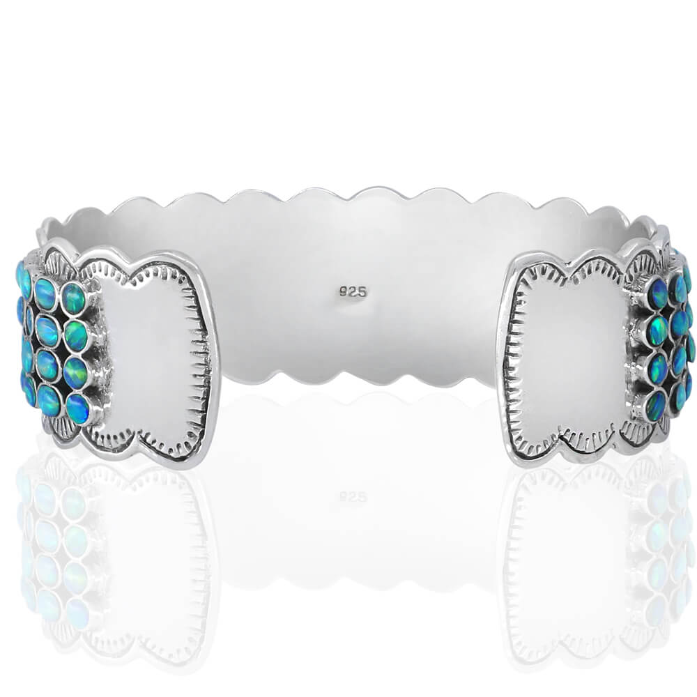 Stunning High-Quality Cuff Bracelet, made of Solid 925 Sterling Silver set with Genuine Blue Opal.
