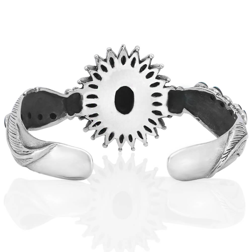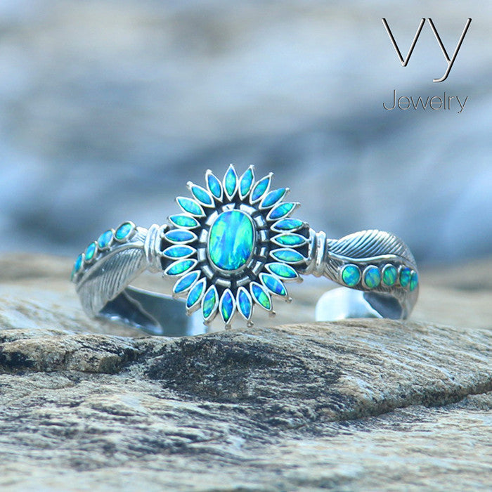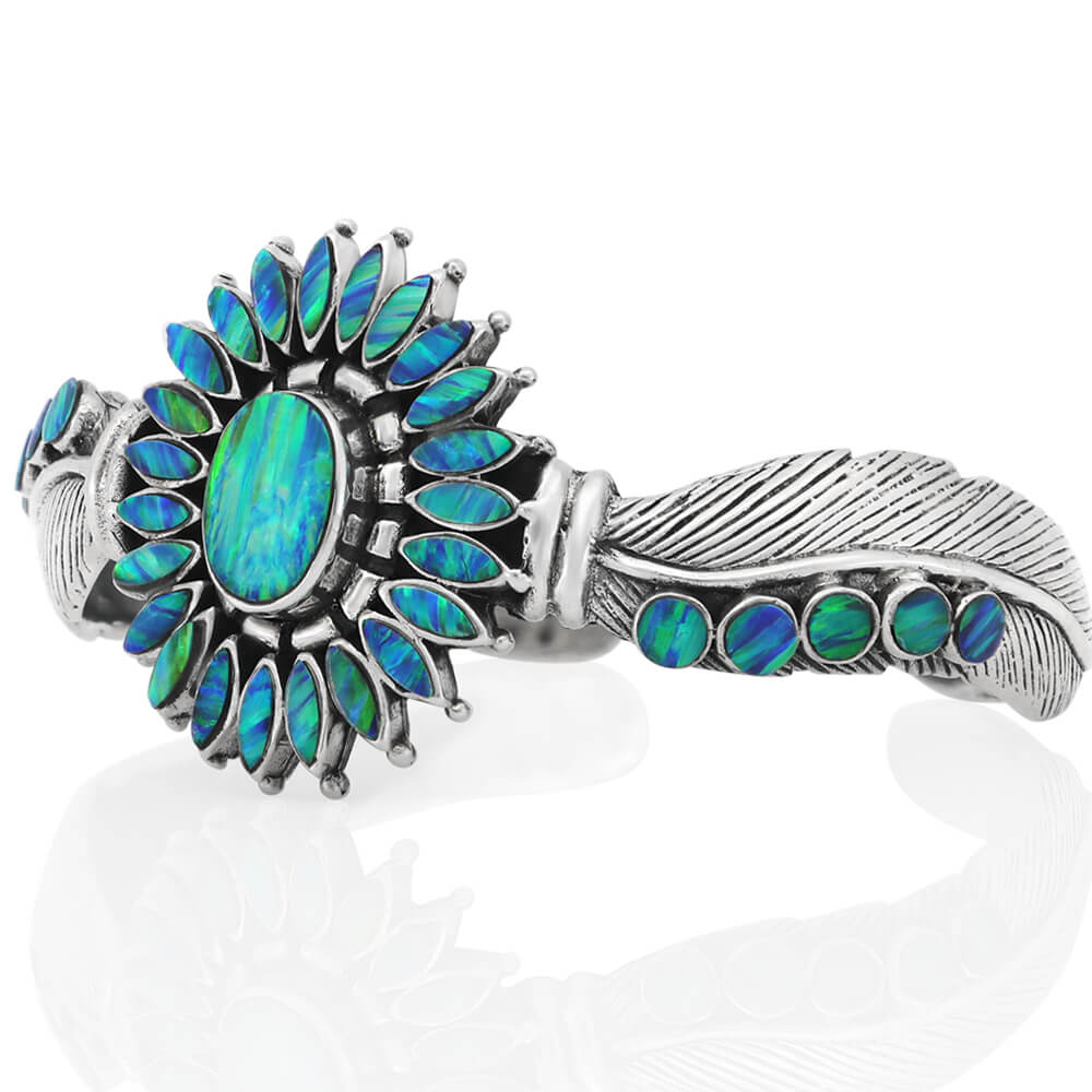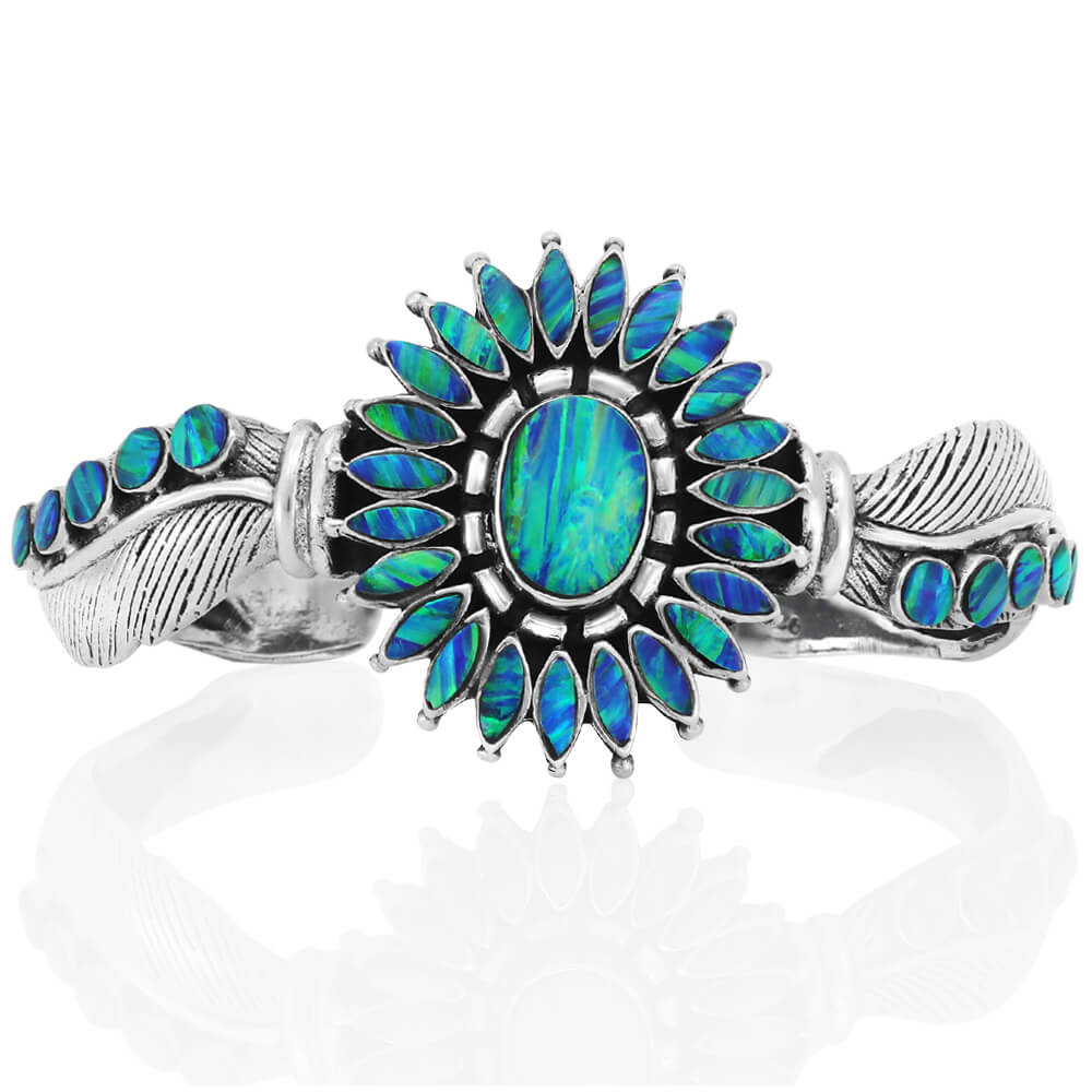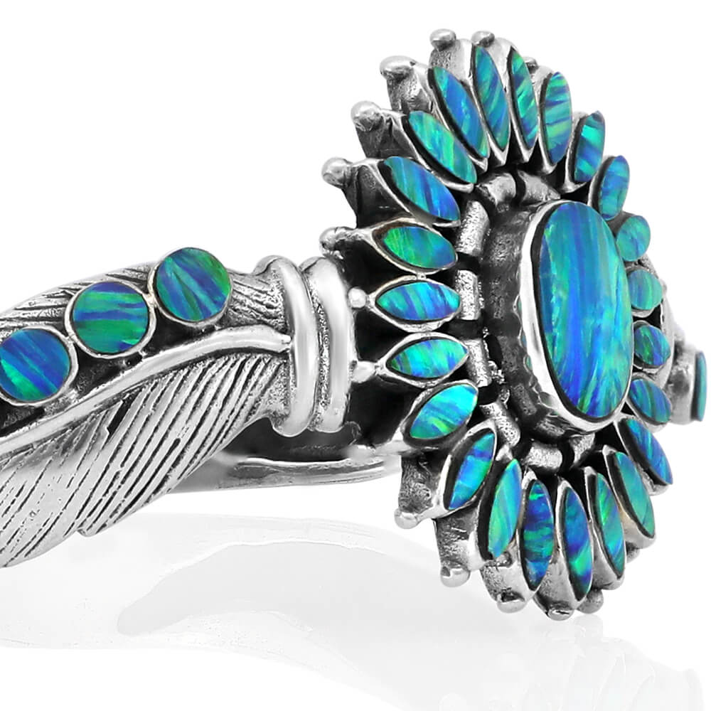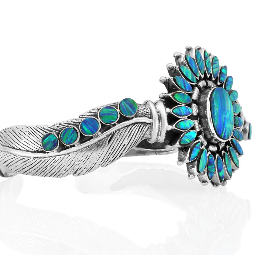 Charming Cuff Bracelet, made of 925 Sterling Silver set with Genuine Blue Opal Stones.