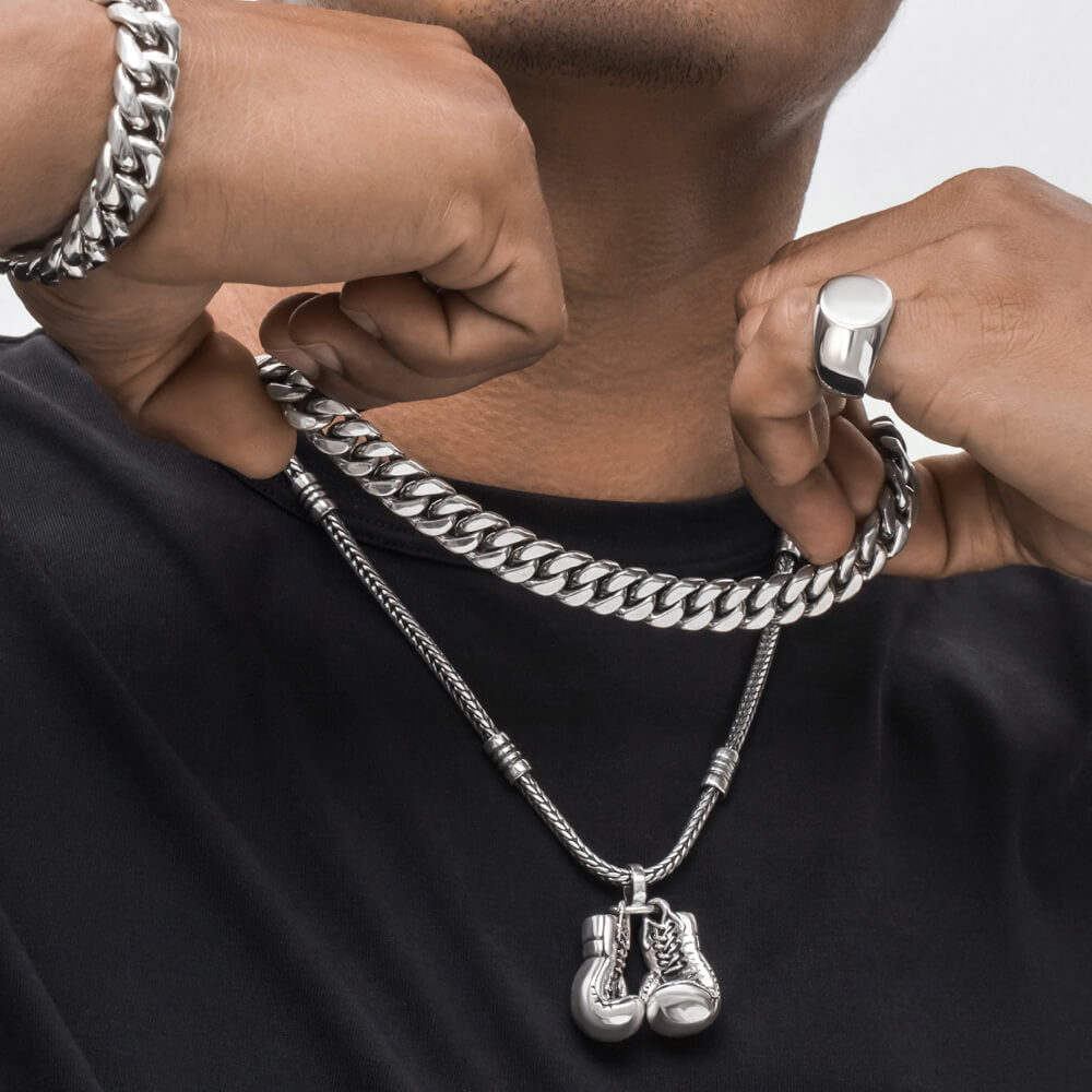 Impressive High-Quality Boxing Gloves Pendant, made of Solid 925 Sterling Silver.