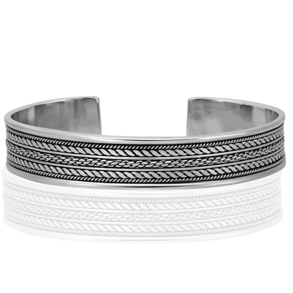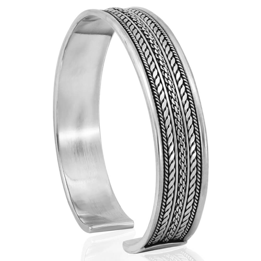 High-Quality Braided Cuff Bracelet, made of Solid 925 Sterling Silver.