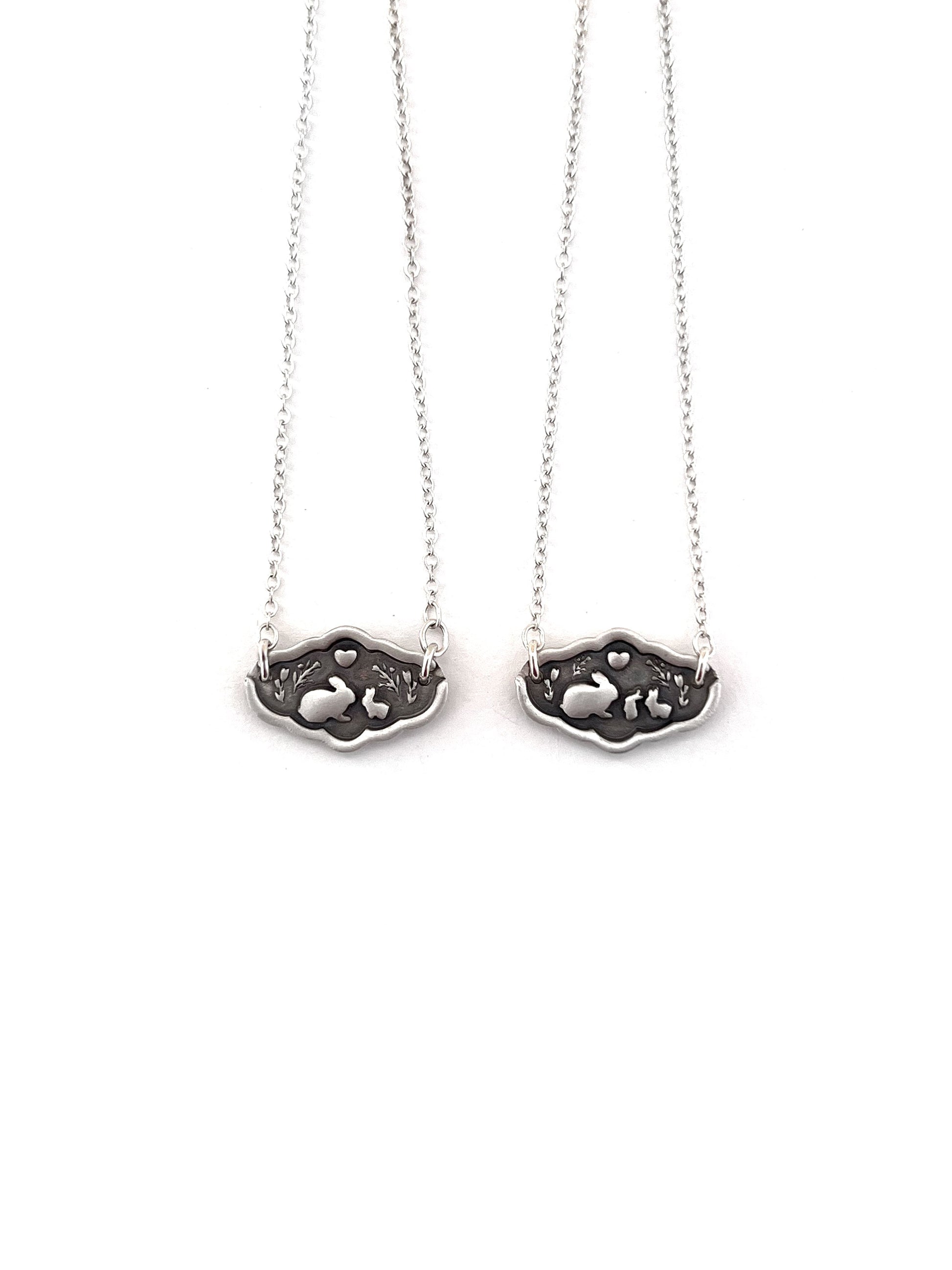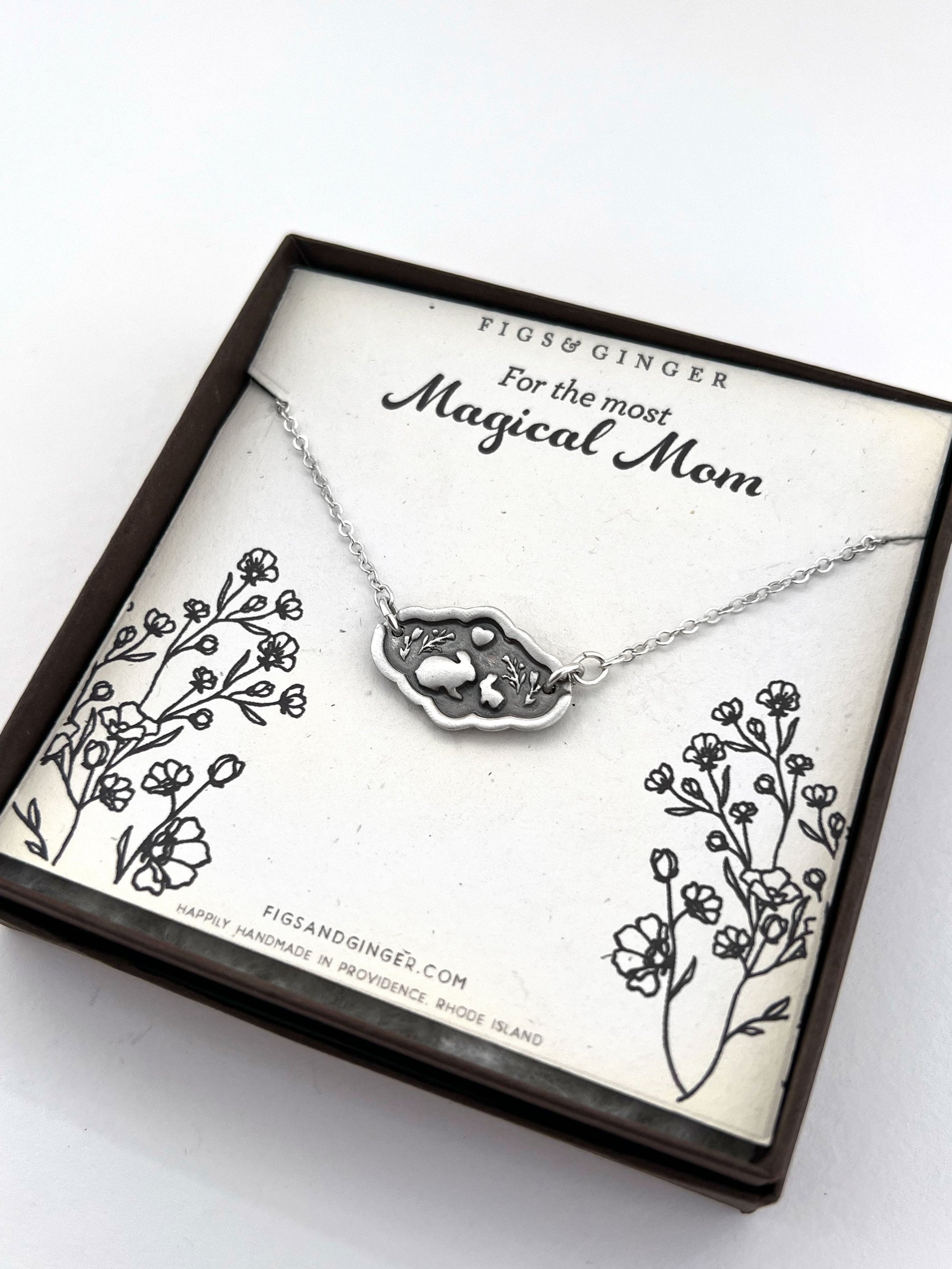 Celebrate motherhood and the charm of nature with this sterling silver Bunny Mother Necklace. Handcrafted with intricate details, this necklace features a mother bunny surrounded by customizable baby bunnies, making it a perfect way to represent your family. Each piece is made from recycled sterling silver and comes polished for a timeless, elegant look.