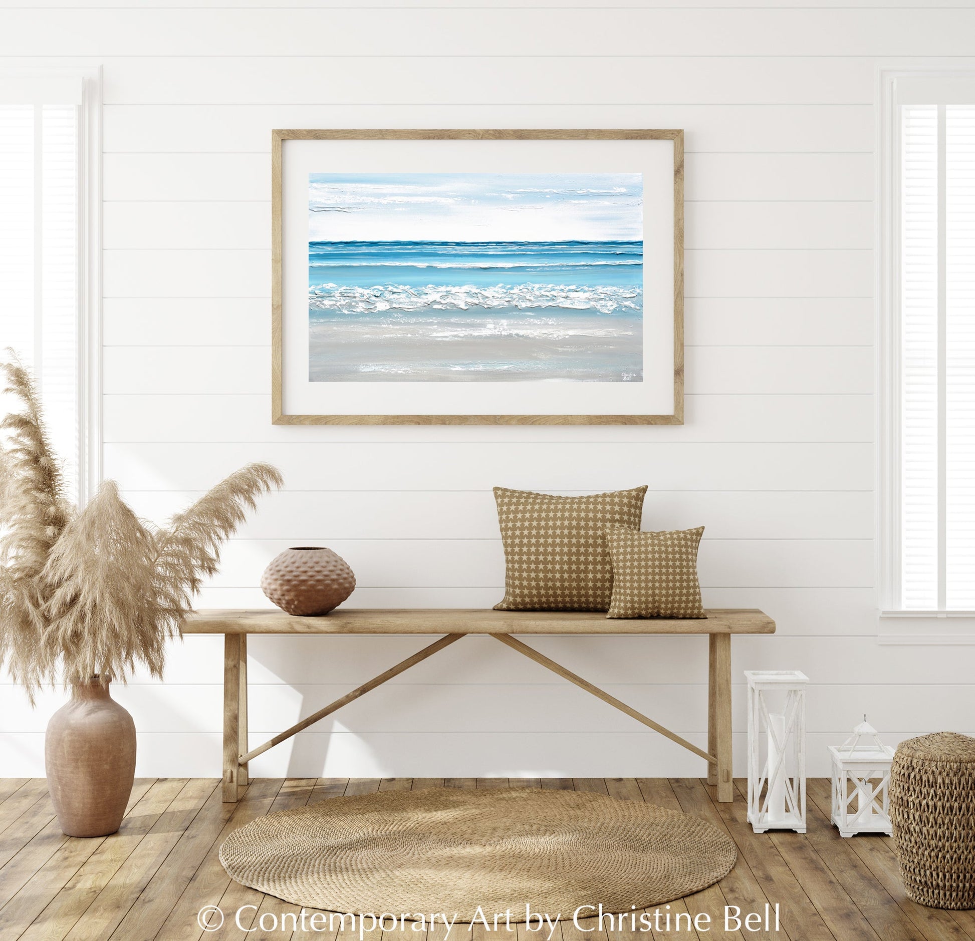 Contemporary Artist, Christine Bell is a highly collected, Professional Fine Artist, who is known for her textured, minimalistic, Coastal Abstract Paintings as well as her Modern Impressionistic Seascape Paintings, Landscapes, and Florals. Christine is consistently commissioned by top Interior Designers, to paint custom, commissioned paintings to be displayed in their clients' homes or office spaces. Her work has been purchased by many high-end hospitality spaces; resorts, hotels, and spas. She is courted by high end Art Galleries for shows, and is one of the largest selling US Artists over the past decade+ in the online gallery space. With a large online presence, she is frequently contacted to be an Art Consultant for Interior Designers' Projects and provide mentoring for Emerging Artists. Where many artists are trained in one genre or subject, Christine reveals that she feels her mind needs to paint what she is drawn to in any certain moment, be it textures of a stone, the roll of ocean waves, or the sunlight playing off the trees and grasses. She intuitively knows that she cannot limit herself and is constantly exploring new subjects, media, and techniques. Christine’s mission with her artwork is to allow the viewer a moment to step out of our sometimes chaotic, "over-technological" and overwhelming lives into a mindset of peace, calm, and what truly matters in life – loving one another and experiencing the beauty of captured moments in time within the natural world.