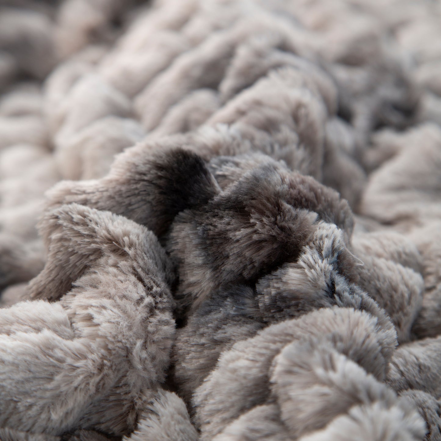- 240gsm real tie dye ruched pv fur with 70gsm filling to 180gsm solid mink, knife edge, folded with ribbon and insert