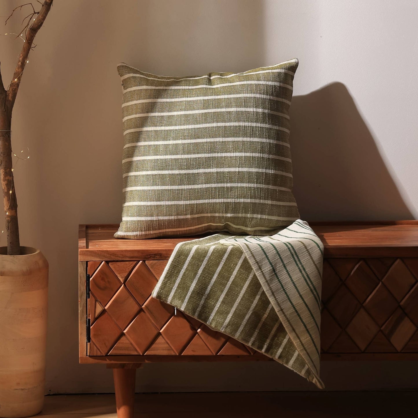 Handcrafted 100% Cotton Double Sided Striped Cushion 18' x 18'