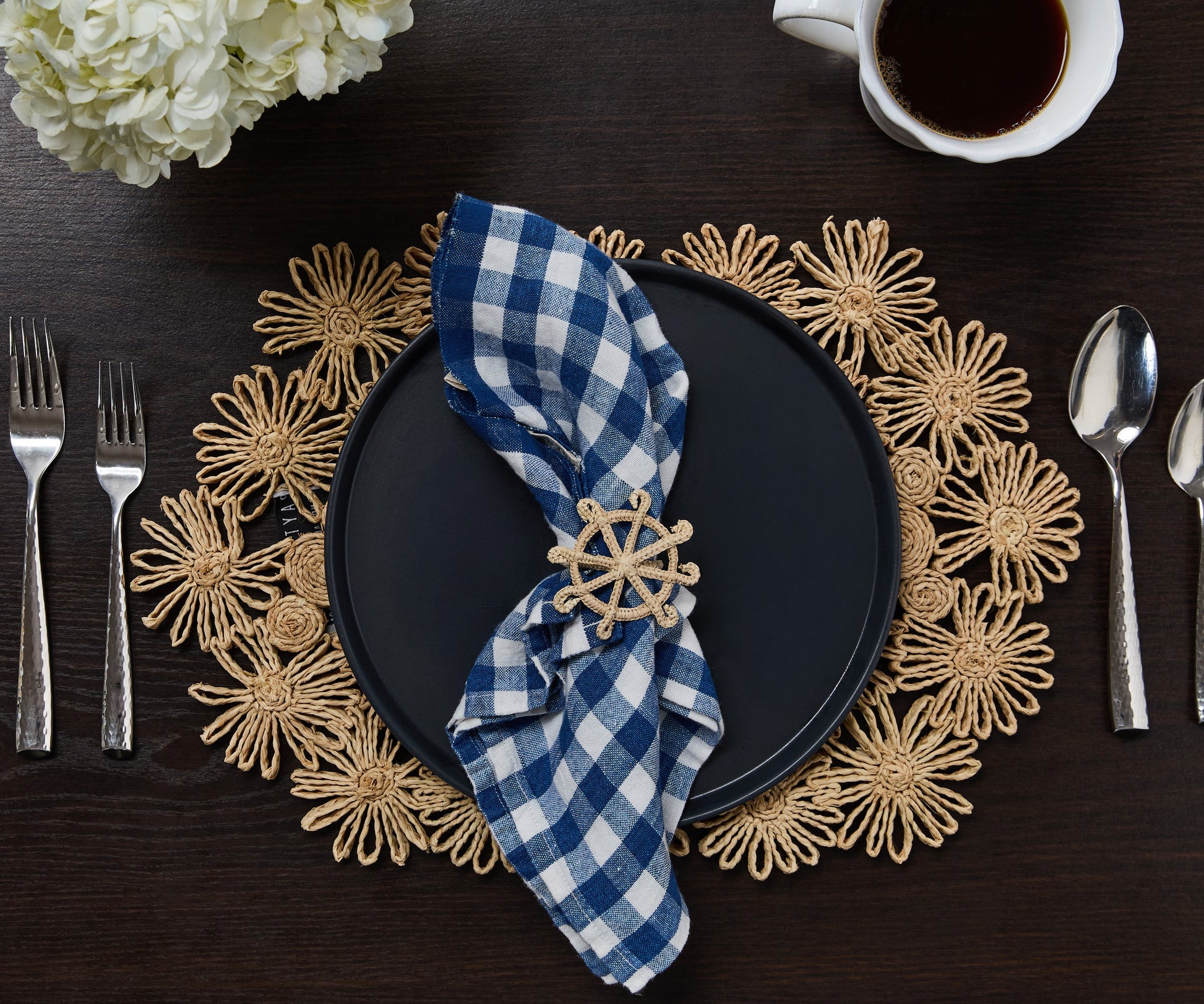 Fleur Raffia Placemat, Natural Color Flowers Woven Tabletop