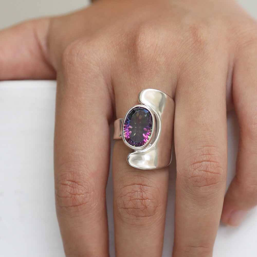 Elegantly enchanting 925 Sterling Silver Women's Ring with a mesmerizing Mystic Quartz Stone. Elevate your style with grace.