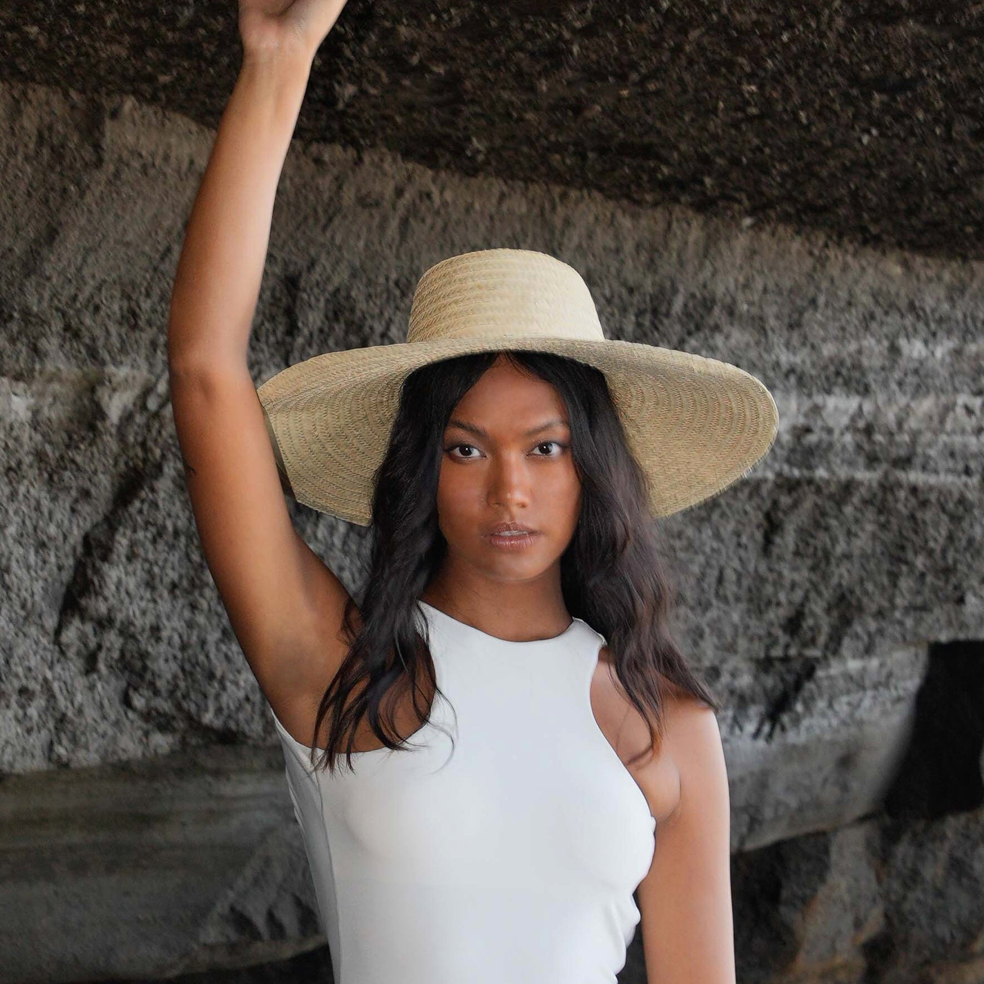 Rianna Palm straw hat is crafted from lightweight palm straws sourced locally from Bali. This sleek sun hat features a wide brim and cotton neck straps to keep it secure when the winds pick up. Wear yours to stay protected on sunny days in style.
