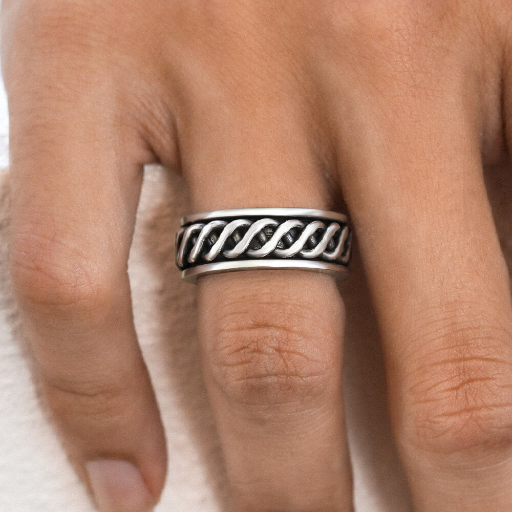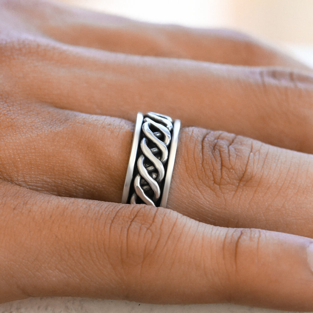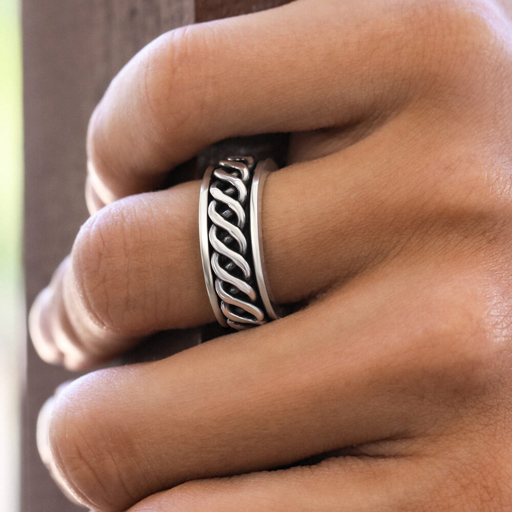 Spinner rings are two banded rings. They are also known as worry rings or meditation rings. One band of the rings stays in place while the other on the inside spins. These rings have magical powers that could cure tension while spinning.