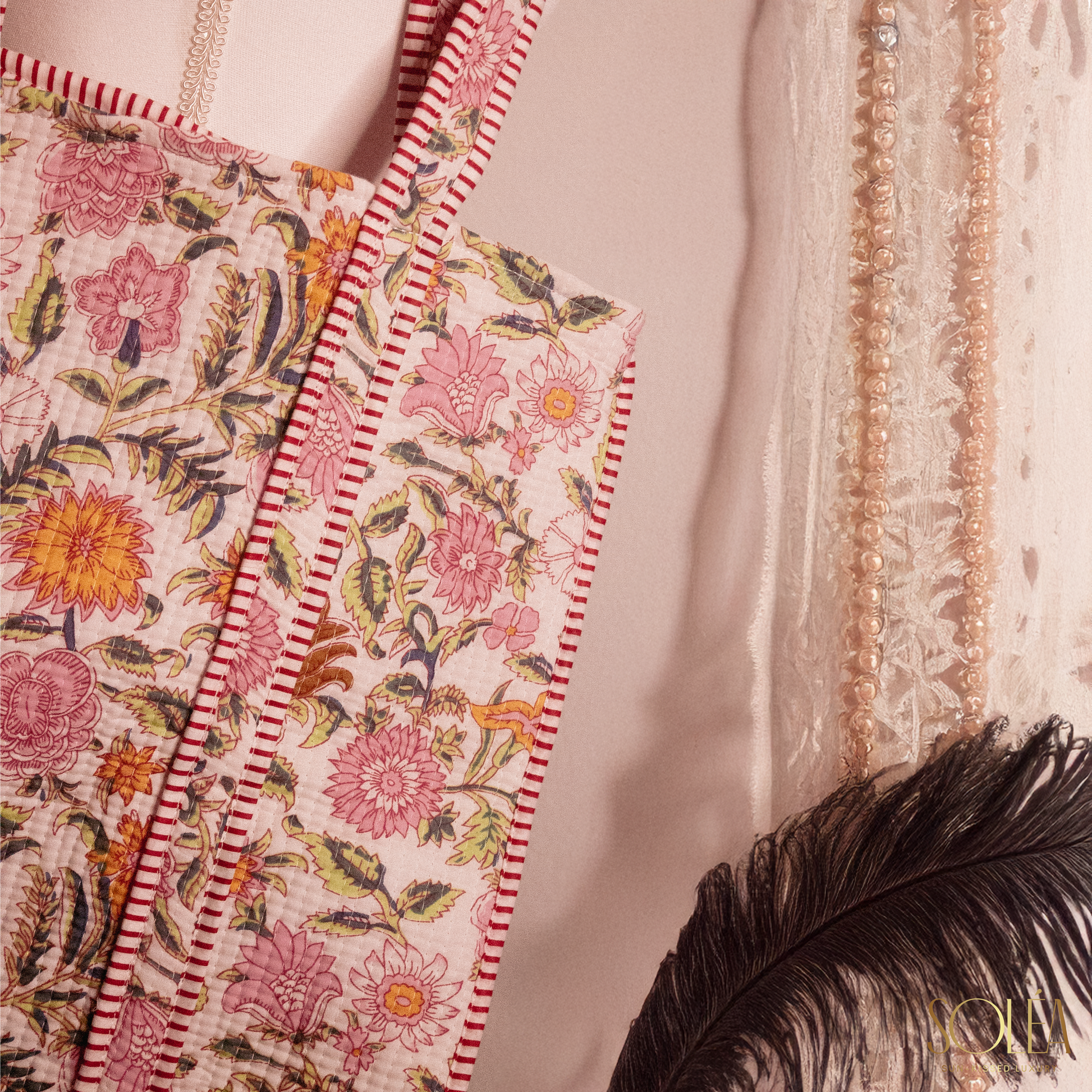 This beautiful handmade tote bag is inspired by the delicate beauty of cherry blossoms. Crafted from soft cotton with a charming floral print, it's the perfect springtime accessory.