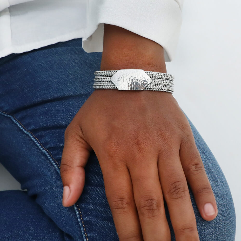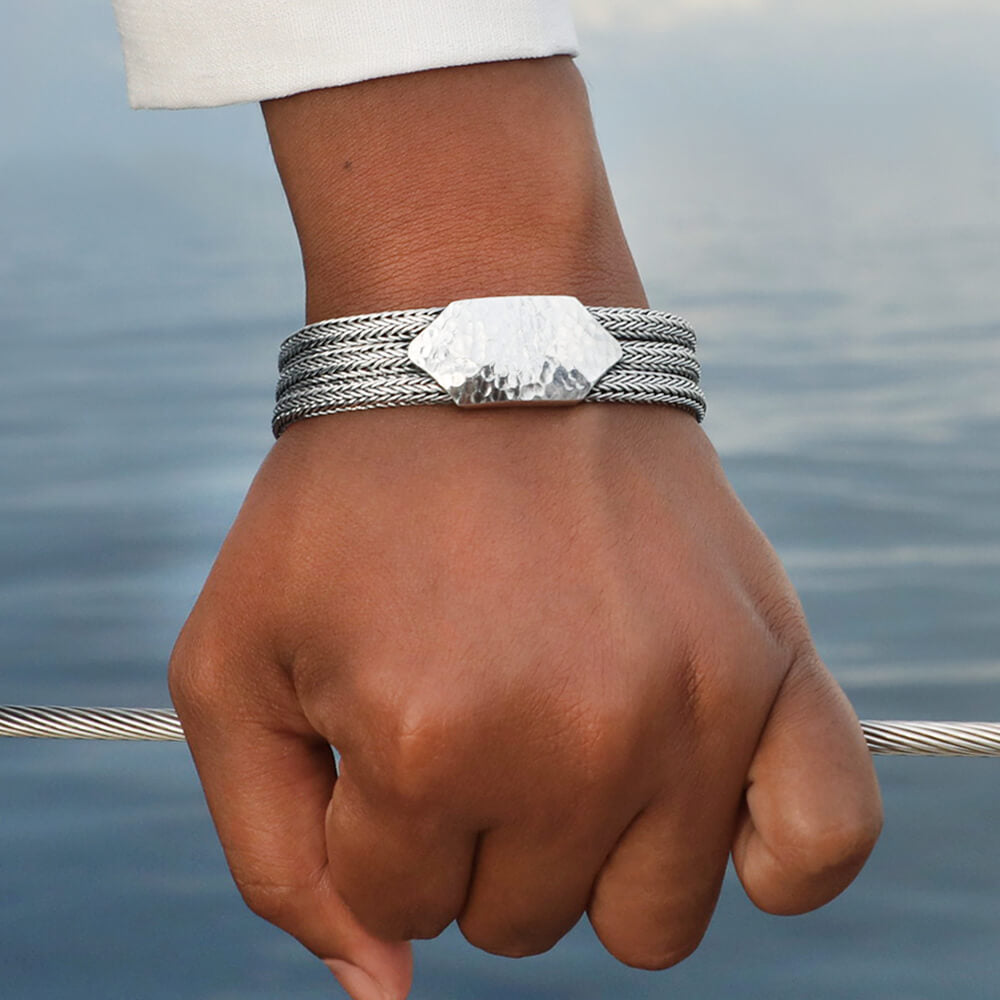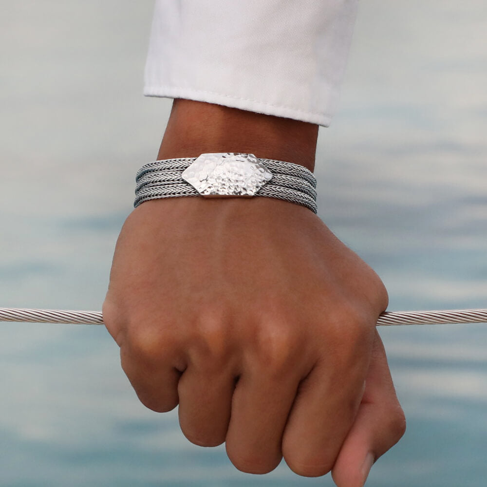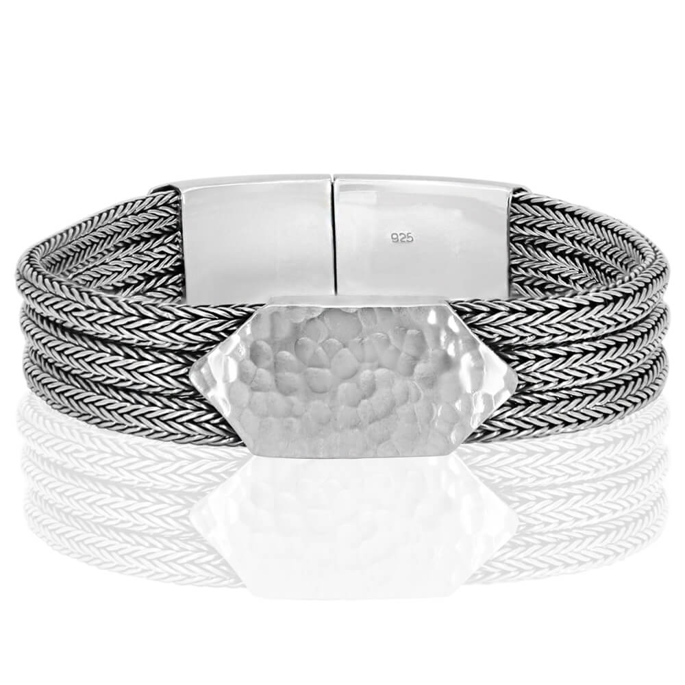 Impressive high-quality bracelet with three braided straps made of 925 sterling silver.