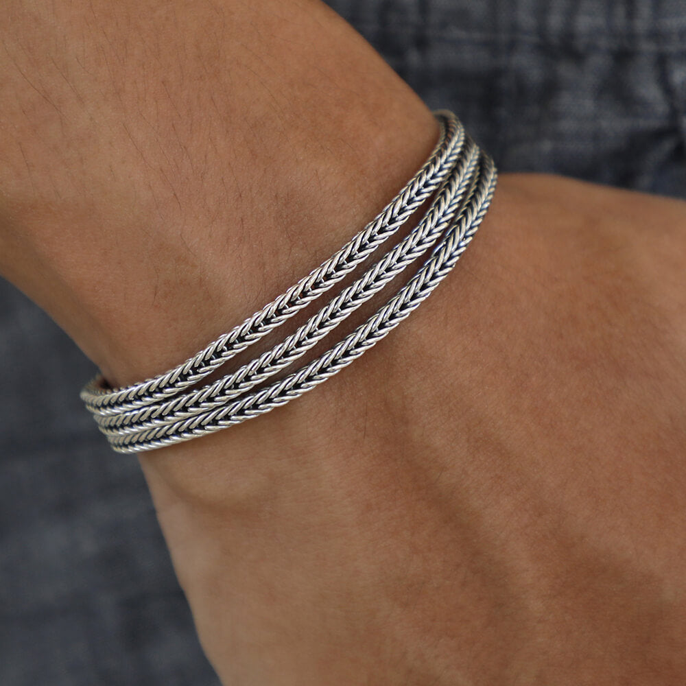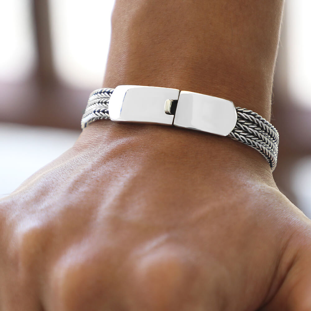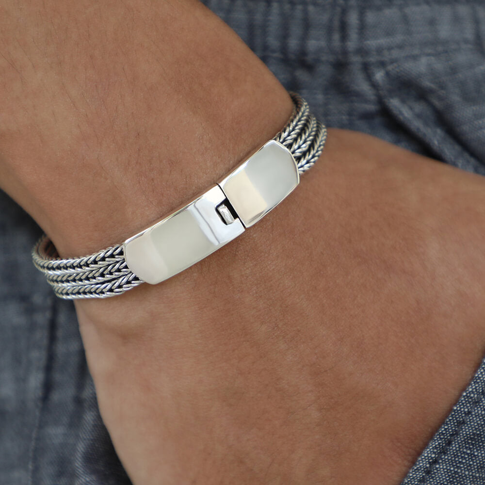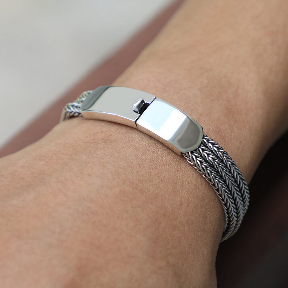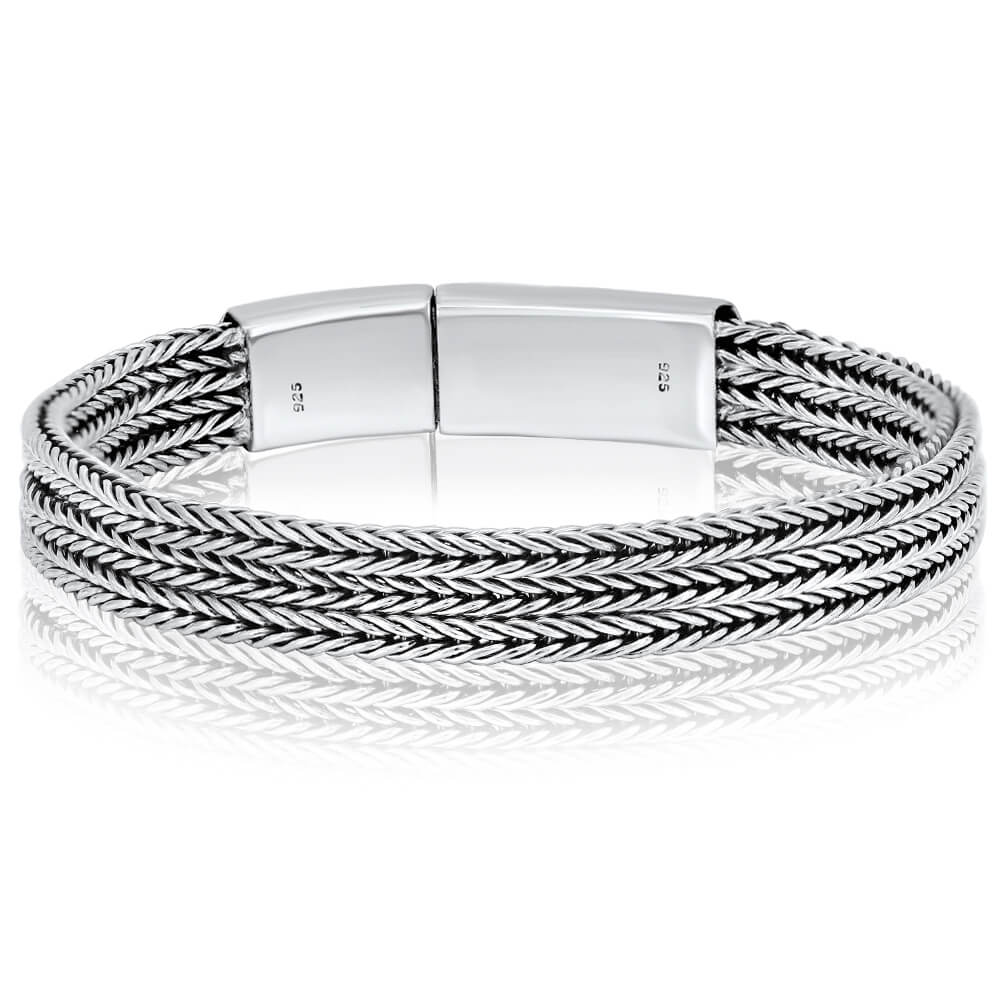 Impressive high-quality 925 sterling silver bracelet with separated three braided straps.