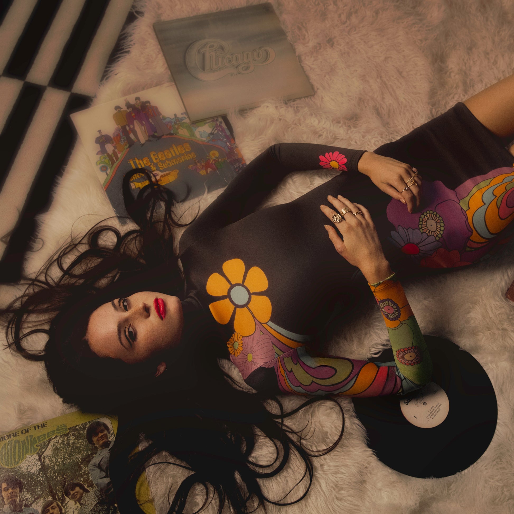 Meet the groovy Zappa Long Sleeve Mini featuring a hand-drawn triptacolor floral design drawing inspiration from the late 1960's wild-child counterculture. This chic dress boasts a turtleneck for added sophistication, without compromising on warmth. Meticulously crafted with a heavyweight knit for support and breathability, and lined with a velvety soft black cotton jersey, this dress exudes playful sophistication.