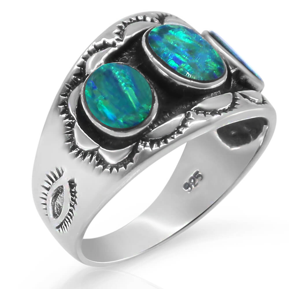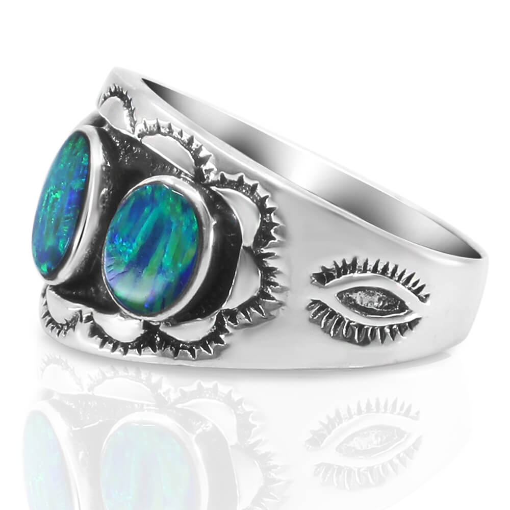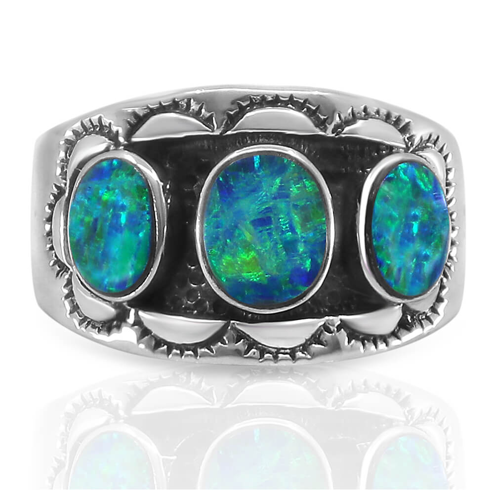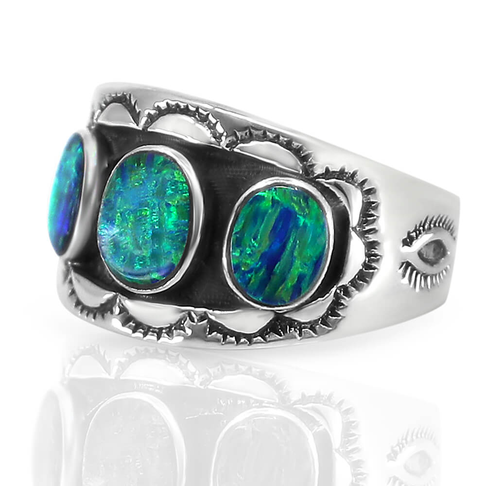 - Stone Type: 3 x Blue Opals doublet with a Black Onyx.