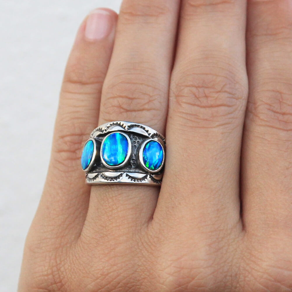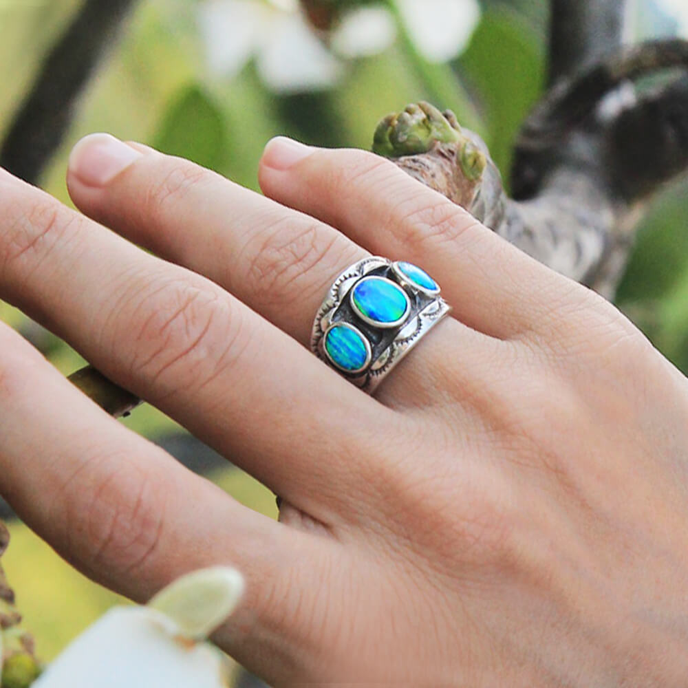 Impressive Women Ring, made of 925 Sterling Silver set with Genuine Blue Opal.