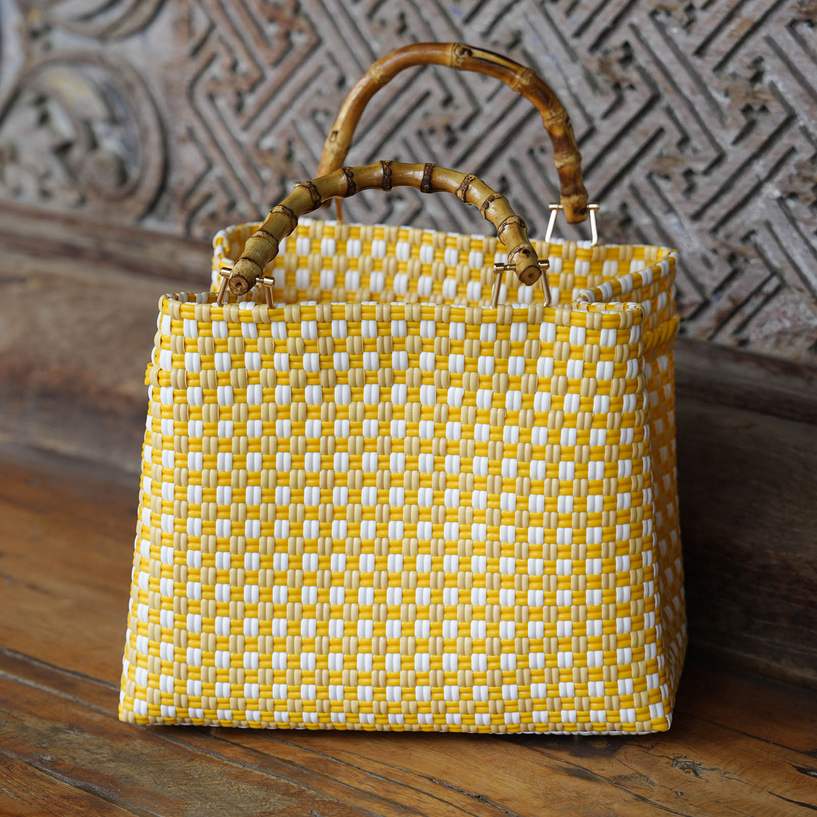 Designed with intention, TUKU features a timeless checker-weave and a smooth bamboo handle that rests effortlessly in hand. Light yet structured, it moves with you from sun-drenched market mornings to moonlit strolls—an elegant companion for wherever the day leads.