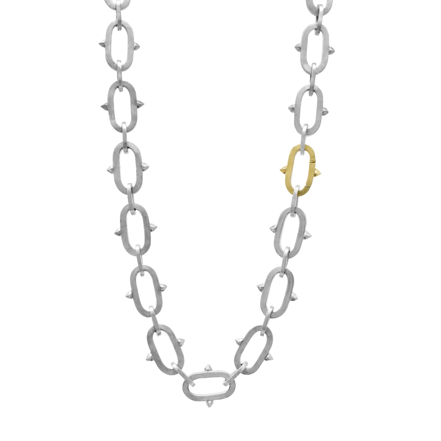 The perfect statement chain. Handcrafted from solid gold or silver, this classic profile blends our signature spikes and bold heavy links in perfect harmony, exuding strength and sophistication.