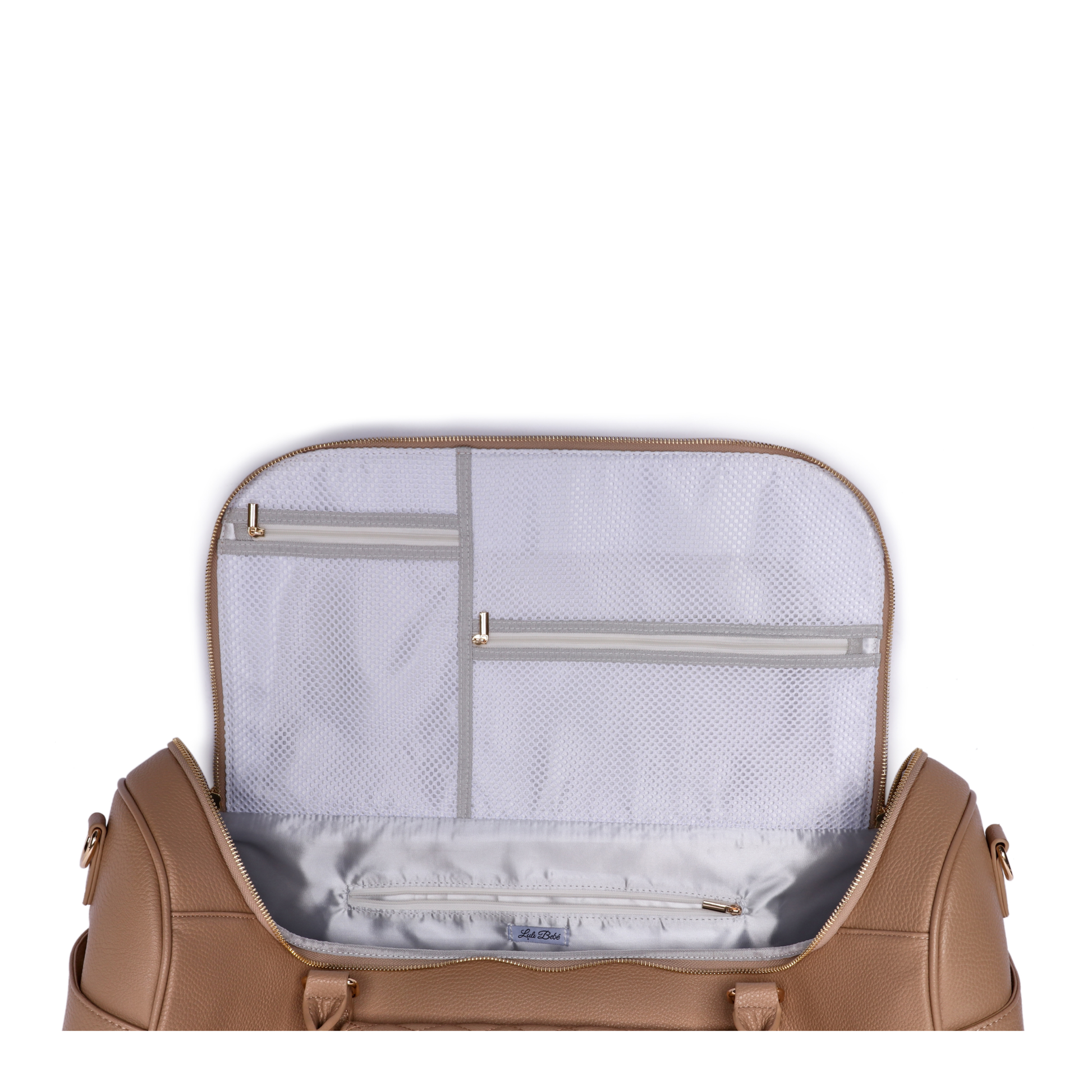 Experience the perfect balance of style and function with this latte brown weekender bag from Luli Bebé.