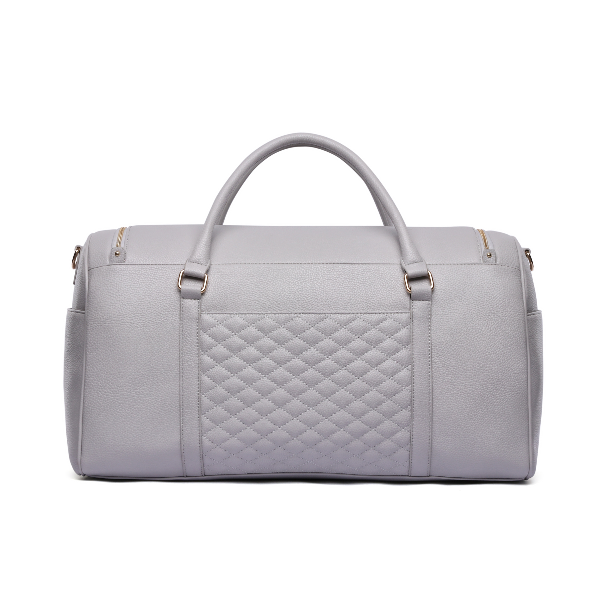 Travel with elegance and durability with this stone grey weekender bag from Luli Bebé.